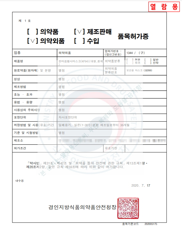 | ÇѸ¶À½ Ȳ»ç ¸¶½ºÅ© KF94 ´ëÇü, Èò»ö